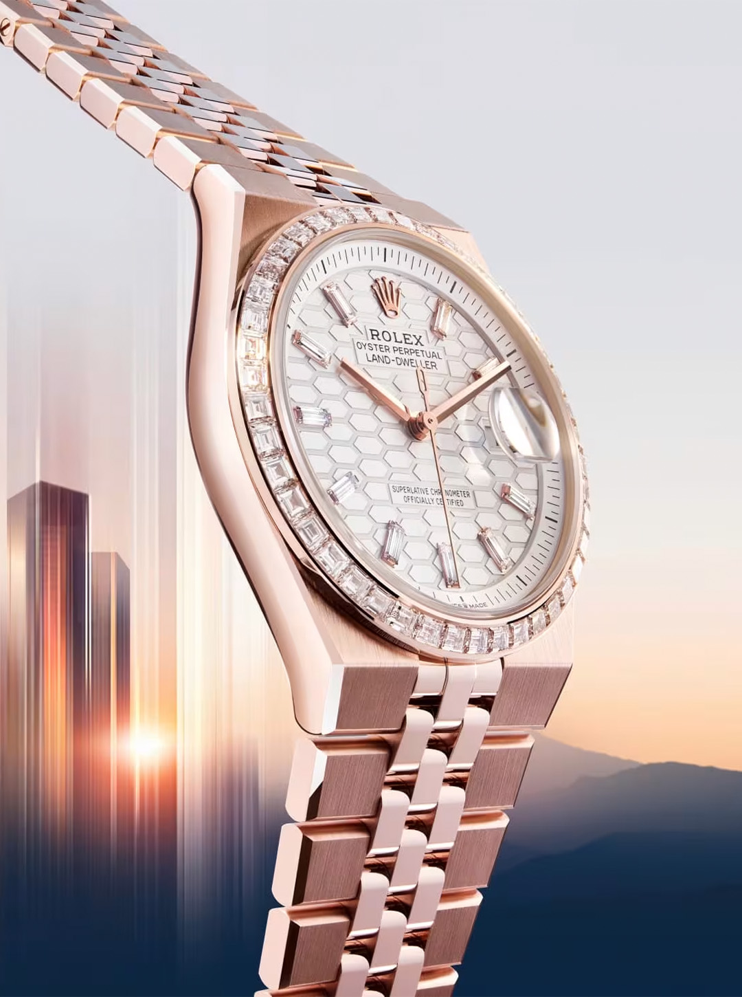 Rolex begins a new chapter in its history with the Oyster Perpetual Land-Dweller. The embodiment of numerous watchmaking achievements, crafted by those shaping the future of watchmaking, the Land‑Dweller is a watch for those who build tomorrow’s world today.