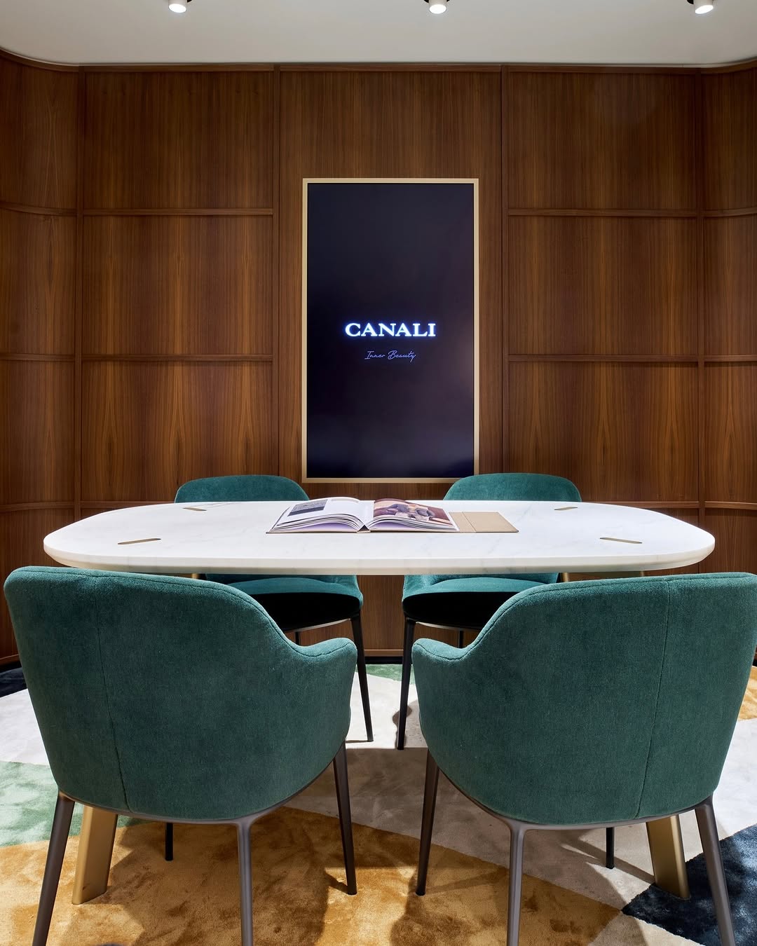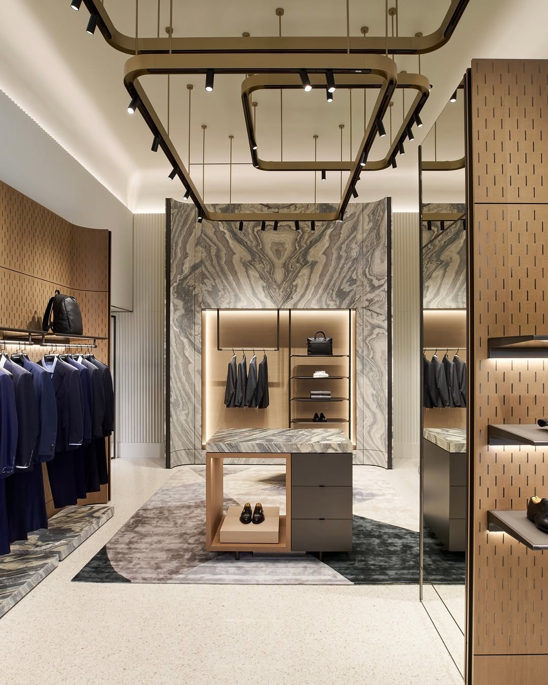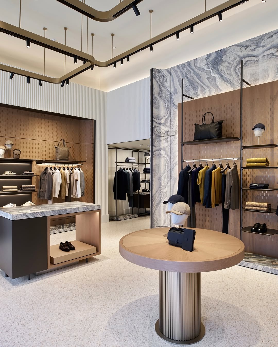 The boutique has been reimagined under Canali’s Lifestyle Store Concept, a design philosophy that translates the atmosphere of a modern Milanese home into an architectural experience. Inside, sculptural forms and natural materials blend with soft light and muted tones, creating a serene environment that reflects the brand’s heritage of quiet sophistication.