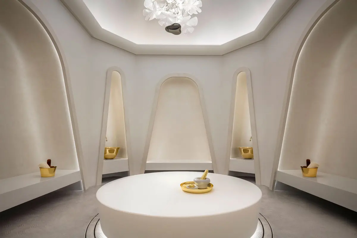 At the core is the Royal Sensorium — a full-spectrum purification across mind, body, emotion, and spirit. Choose between VIP double hammams with private entrances, gender-specific zones, or the Sensorium by AWAKEN — a scent-and-spice apothecary with herbs, clays, and oils blended to your unique intention.