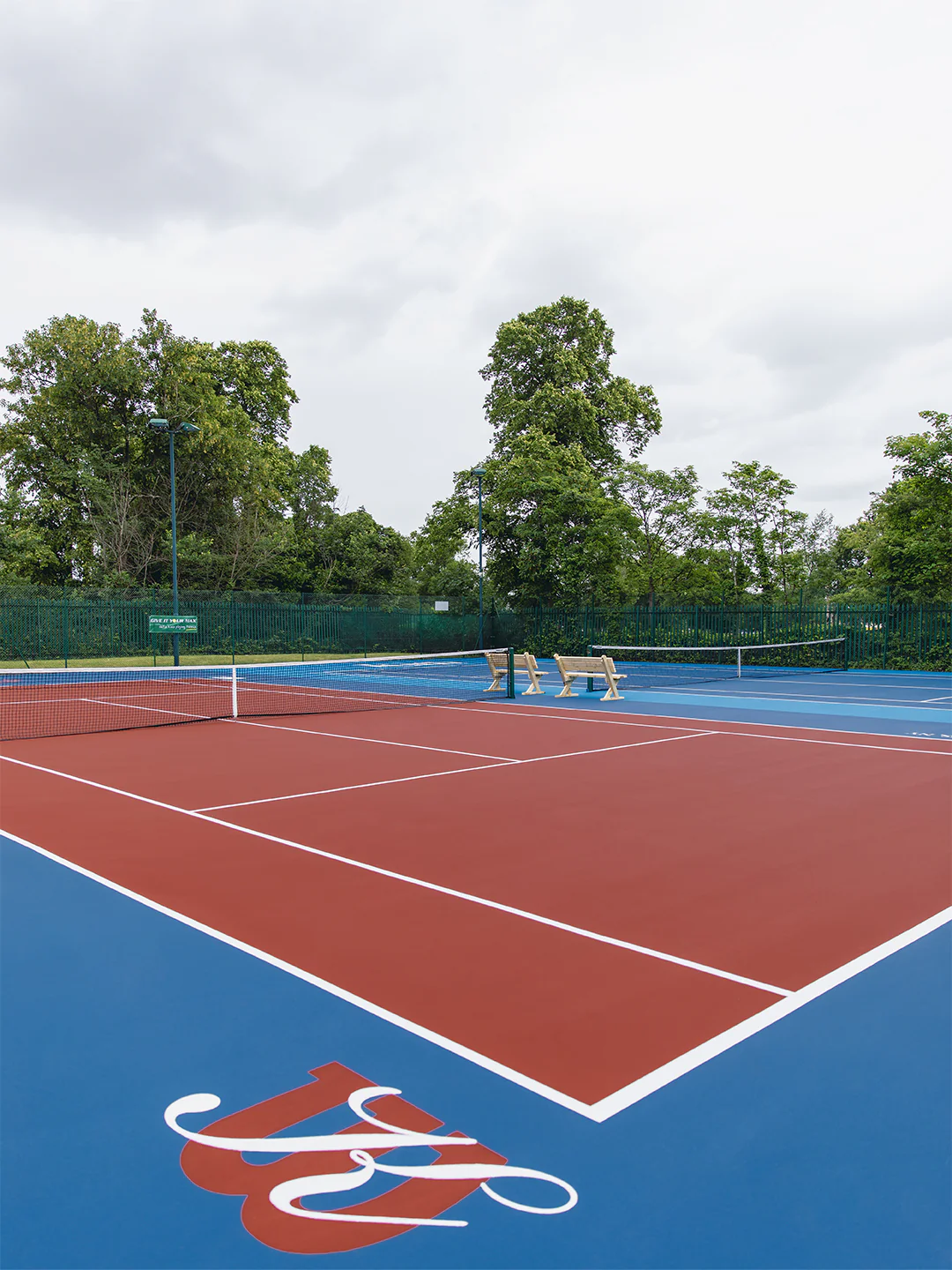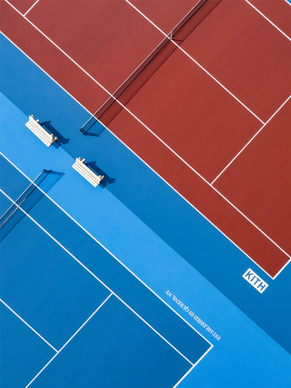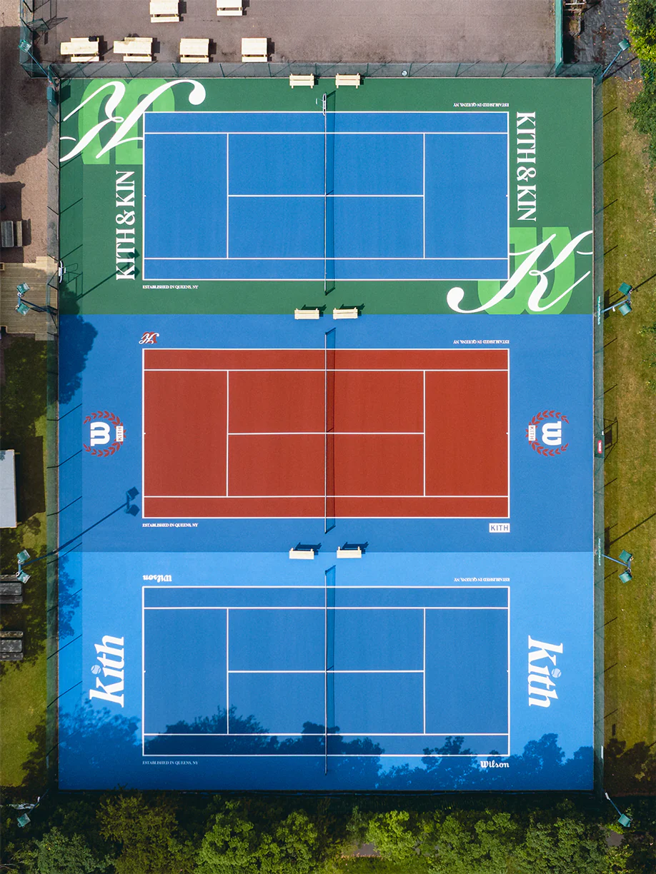 Kith and Wilson transformed Yardley’s three courts, resurfacing and redesigning them with their signature touch. The courts now feature vibrant colours inspired by Kith’s upcoming collection, creating an intersection between function, fashion, and heritage.