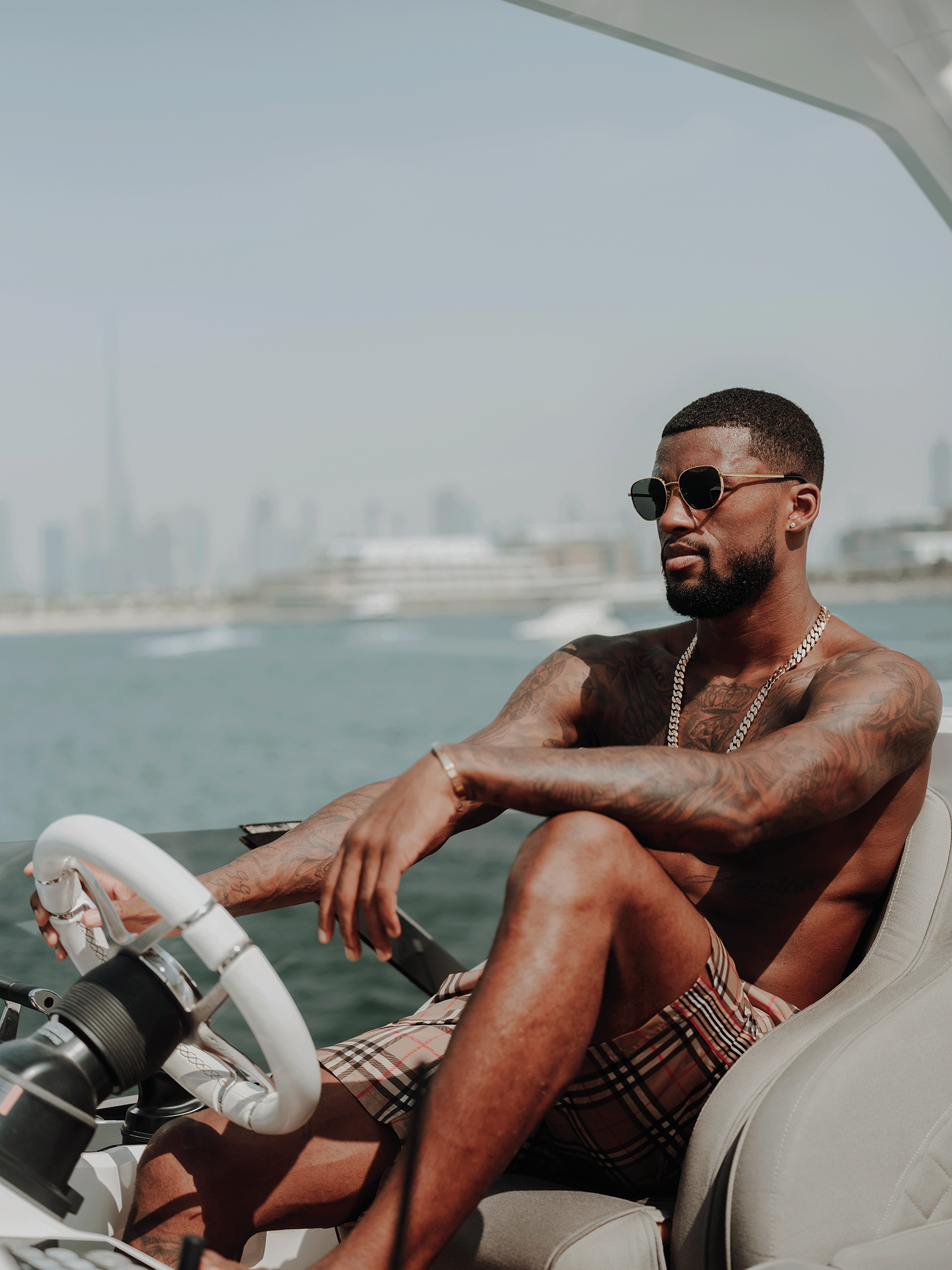 SWM flew to Dubai to conduct an original photoshoot and lifestyle video with Dutch international Georginio Wijnaldum. After a day on the yacht with this Autumn’s cover star, we headed back to his villa and into the night, cruising through downtown Dubai in a blacked-out Mercedes G wagon.