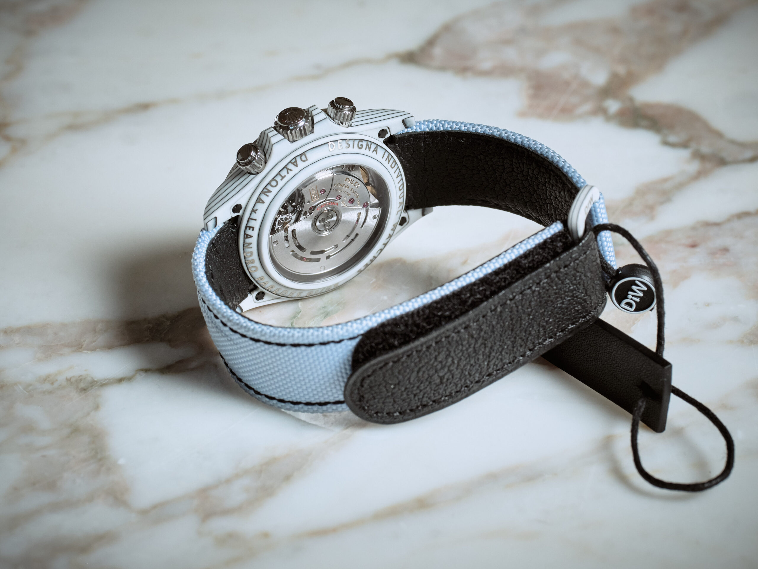 “We pride ourselves on integrating advanced materials with traditional watchmaking,” says Karlsen. “For the Daytona project with Leandro, we employed our proprietary techniques, utilising composite materials, in this case highend Quartz fibre. This ensures a lightweight yet incredibly resilient construction.