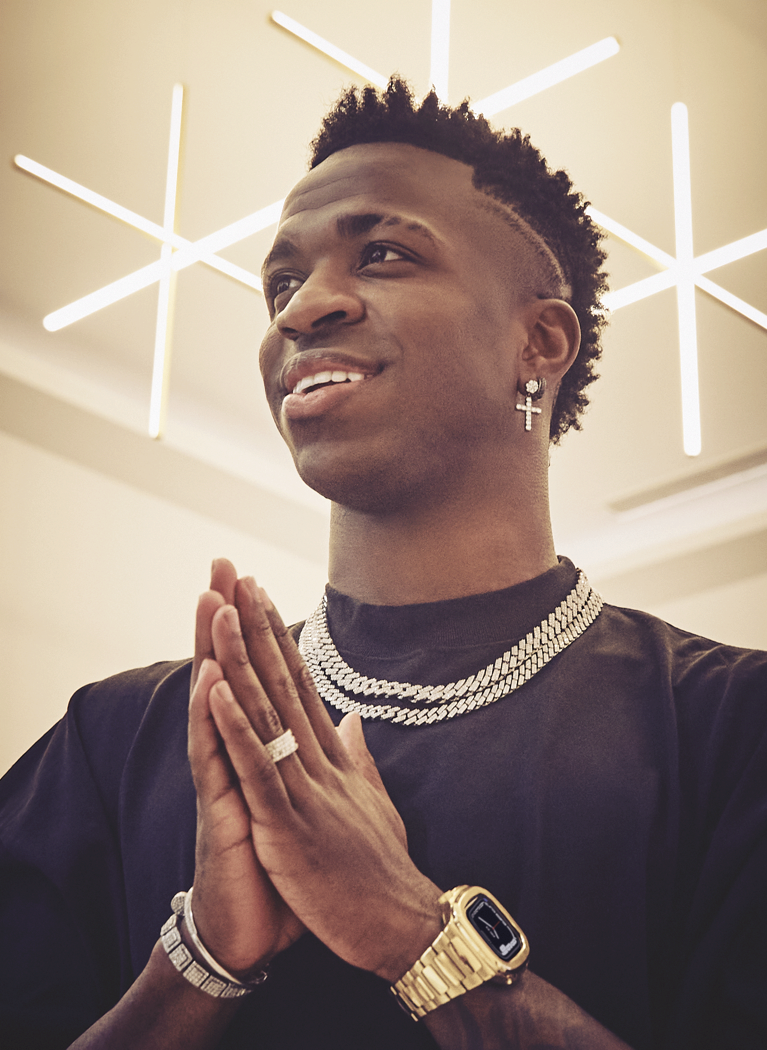 Set against the backdrop of Vincius Jnr’s opulent villa, where modern luxury meets sporting heritage, the stage was set for an unforgettable shoot. From meticulously designed interiors to vast outdoor spaces, his home featured murals of revered athletes Michael Jordan, Pelé and Kobe Bryant; a nod to the sporting heroes who have inspired his journey to the very top of professional football.