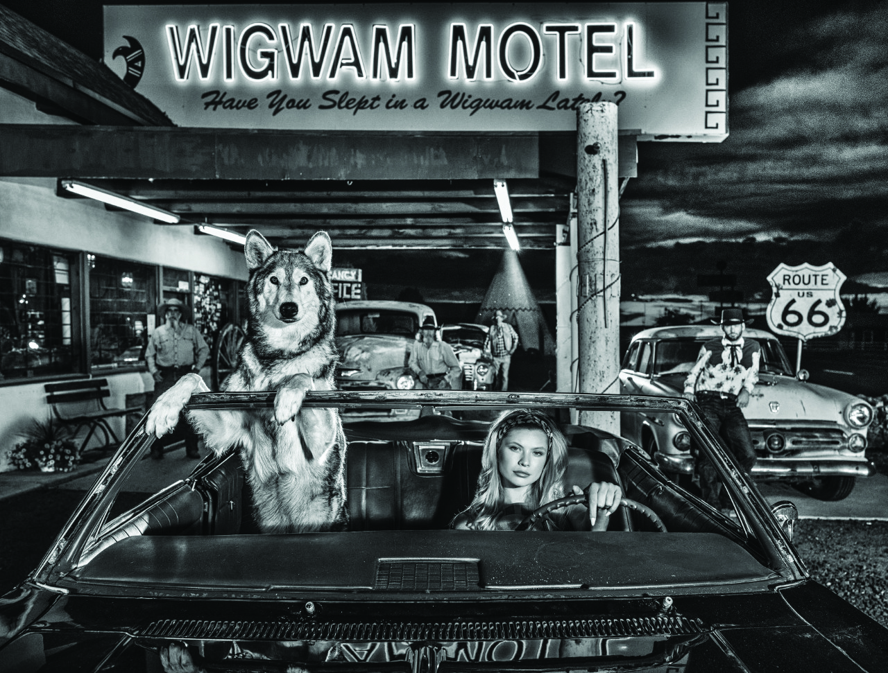 Similarly capturing the freedom and mobility of post-war America, Route 66 is emphatically American. “In the autumn of 2022, I scouted for shooting locations in California and Arizona that would offer a Route 66 vibe and I found it to be a challenge,” says Yarrow of hunting down the setting of this striking black-and-white image. “So many of the motels and diners along the route are either abandoned or, worse still, have become kitsch tourist attractions. Then I stumbled across the town of Holbrook and the Wigwam Motel. Holbrook is as good a canvas on which to tell a Route 66 story as I know. To drive through sections of the old town is to go back 60 years.”
