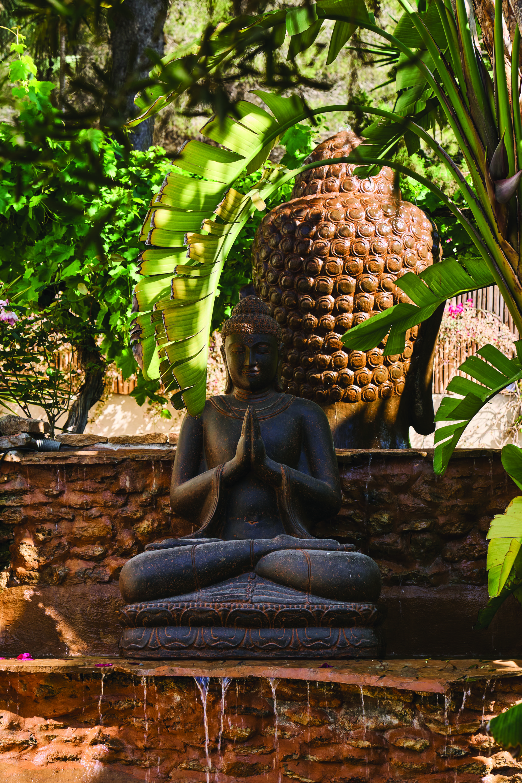 Life in Villa Yin Yang flows seamlessly outdoors. A colour-changing pool forms the centrepiece, surrounded by chill-out zones and alfresco dining spaces. A rooftop terrace captures sweeping views, while a lush orchard completes the villa’s connection to nature — a true retreat within reach of Ibiza’s vibrant heart.