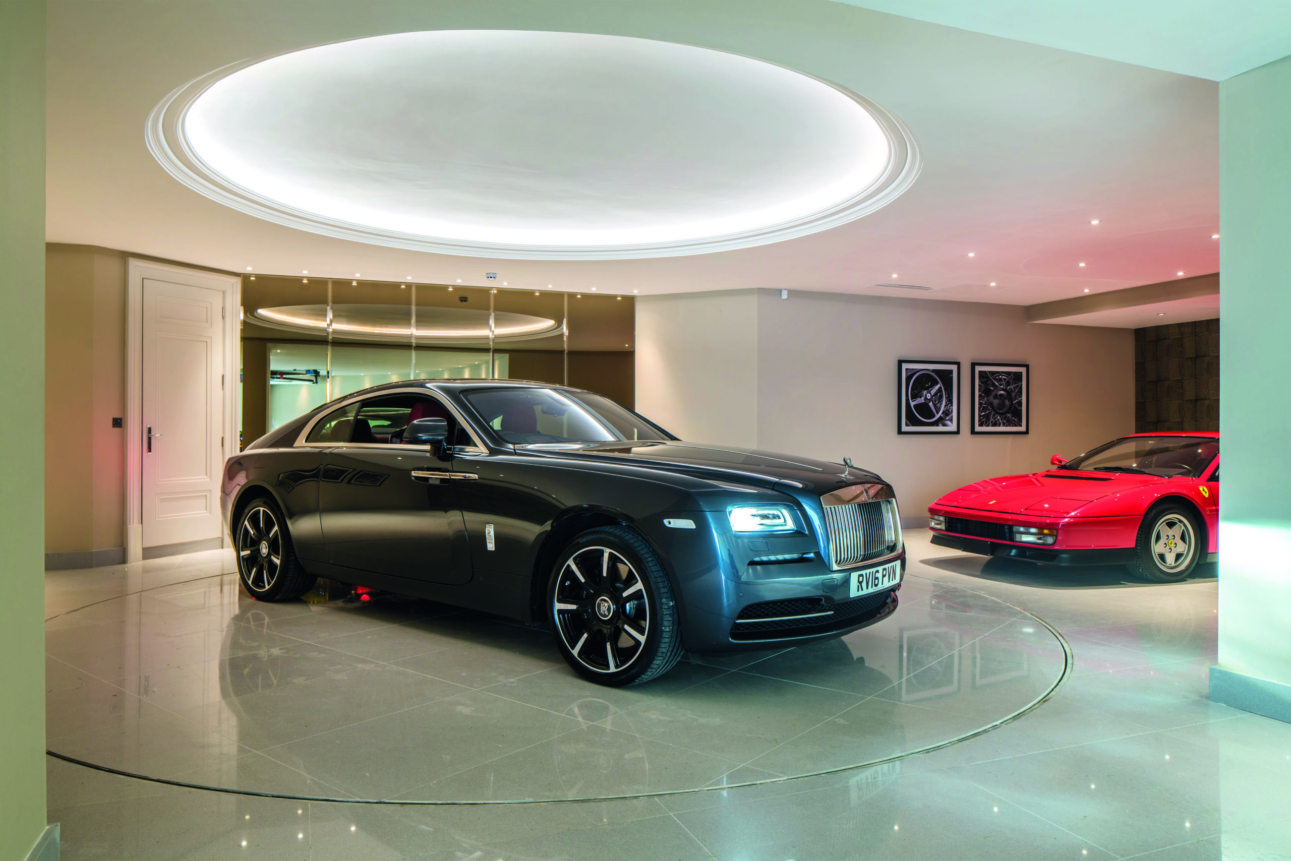 In the garage, the circular coffered ceiling is reflected on the ground with the car turntable. On the ground floor, we created pocket doors in place of traditional doors to not only maximise on the use of space, but to give a sleek and sophisticated look.